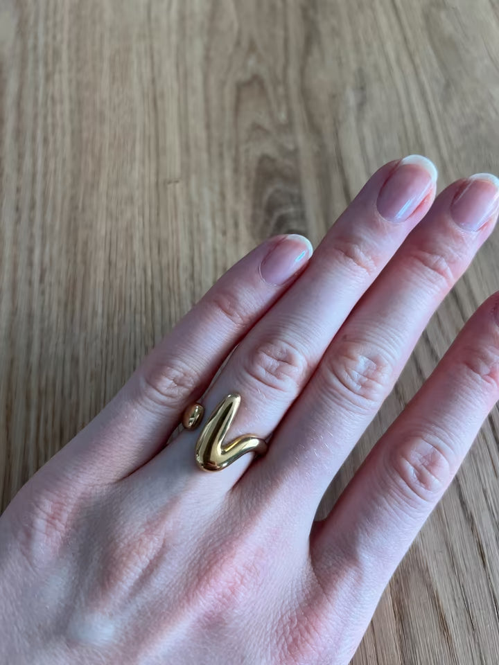 Sleek Wave Adjustable Gold Ring